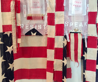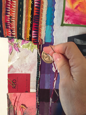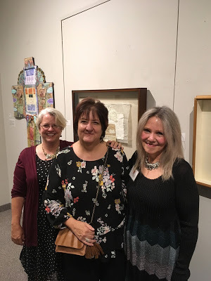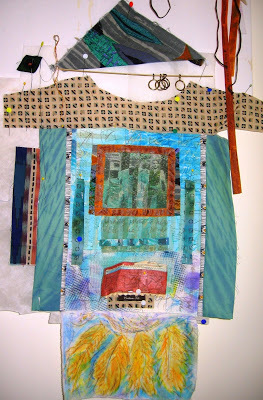 I have so enjoyed creating a great deal of new work for this show: fiber art mixed media quilts and hangings, stitched mixed media collages, and 3-D work. I'll show you more over the coming weeks. Here are a few detail glimpses: