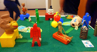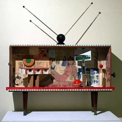 Artist friends Sean and Gail Crum were both in the invitational biennial exhibition, Sean with a cool new print, and Gail with her amazing collage Fear and her assemblage, Skeleton Putt Putt.