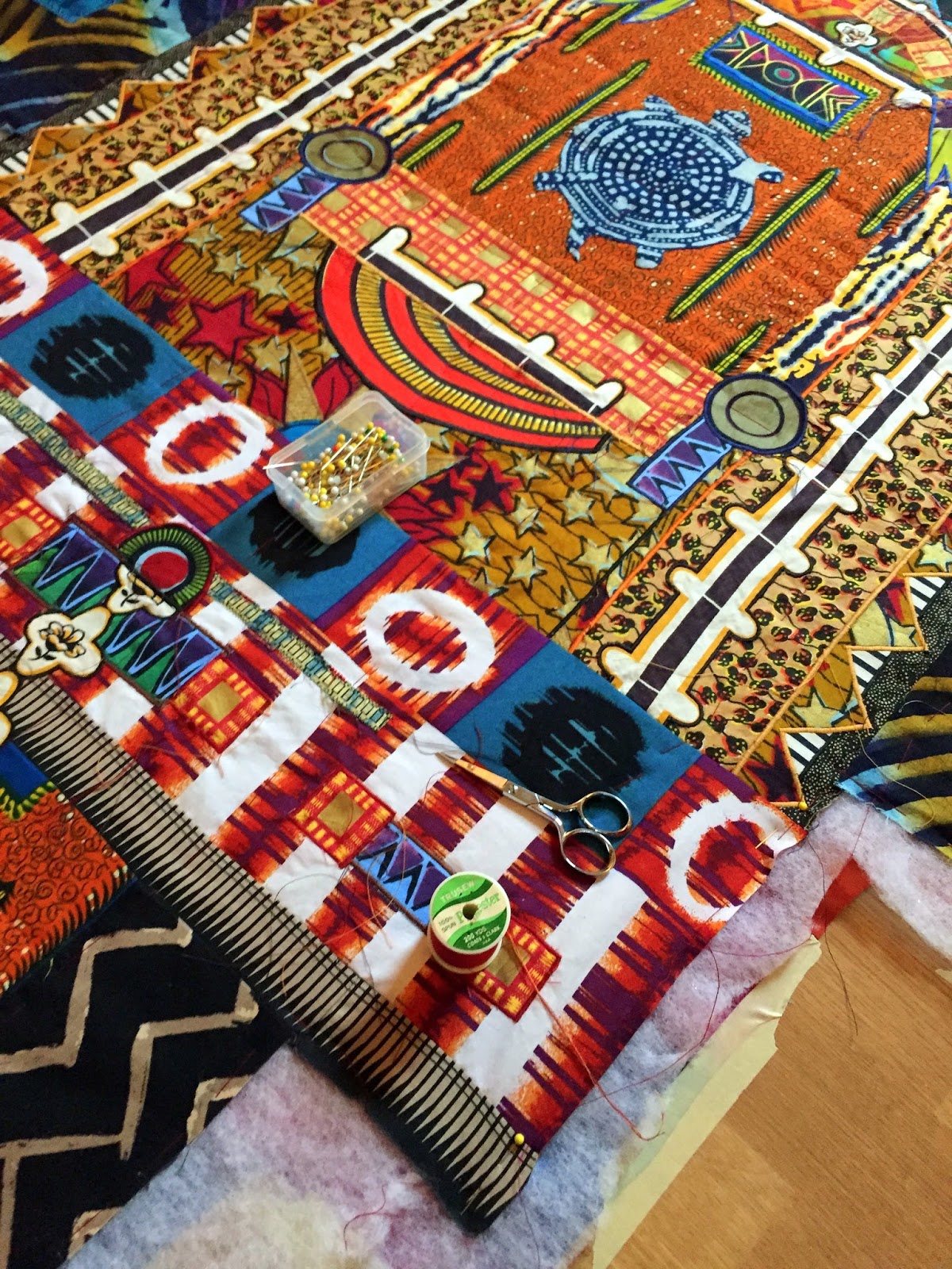batting: it's ready to baste!I'll admit it here and now: I'm old school when it comes to handwork. Although I use my sewing machine strategically in constructing my compositions, I confess I much prefer the rhythm of handwork. That is why I baste my compositions by hand in preparation for quilting by hand. It's how I do things, and I like it that way!
