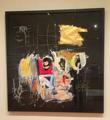 One intriguing aspect of Basquiat's artwork is how he joins smaller drawings together on a larger surface, and then integrates the imagery. Here is an example from the recent show at the Cleveland Museum of Art.