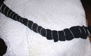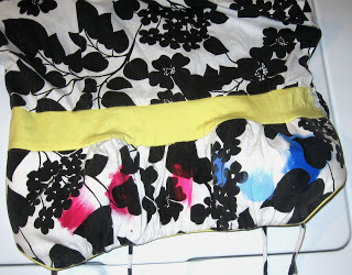 Finally, I have added a picture of today's experiment: fabric paint. I received a package this week, a box of items sent to me to use in my Magic Baby Designs upcycled line. This cute black and white dress was in the box, but is a bit too faded to use as is. The stretch cotton fabric is in still in good condition, however, without pilling or damage other than fading, so I decided to paint it. I did the test on the upper bodice area, which I will not be reusing. I could, of course, overdye the entire garment, but as I said previously, I don't typically have a lot of dyes on hand. I do, however, have a large supply of various types of paints.