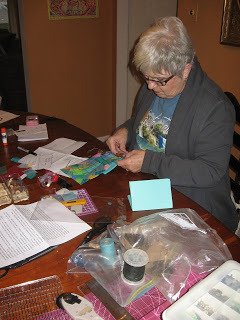 I had a fun group of women this past weekend in my Tri-fold Journal workshop. They did meticulous work, and we all had a lot of fun, chatting away while we worked.