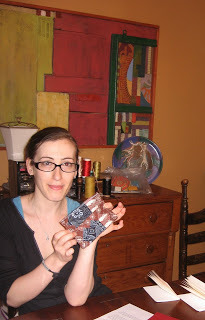 [image error] As mentioned previously, I have been doing physical therapy on my hands for months now. So, what to do when one can't work a normal schedule? Well, my solution has been to reorganize both of my work spaces here in the house. My friend Ginny came over to have a look, and to give me her expert suggestions. The "blue" room, my office, has to accomodate my second laptop, a scanner, a pull-out futon for a guest bed, as well as inventory, collage papers and cardstock. I have also rearranged the blue room glass-topped desks to make room for my yudu screenprinter. I'll post pix when everything is clean and put away!
