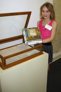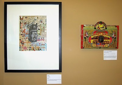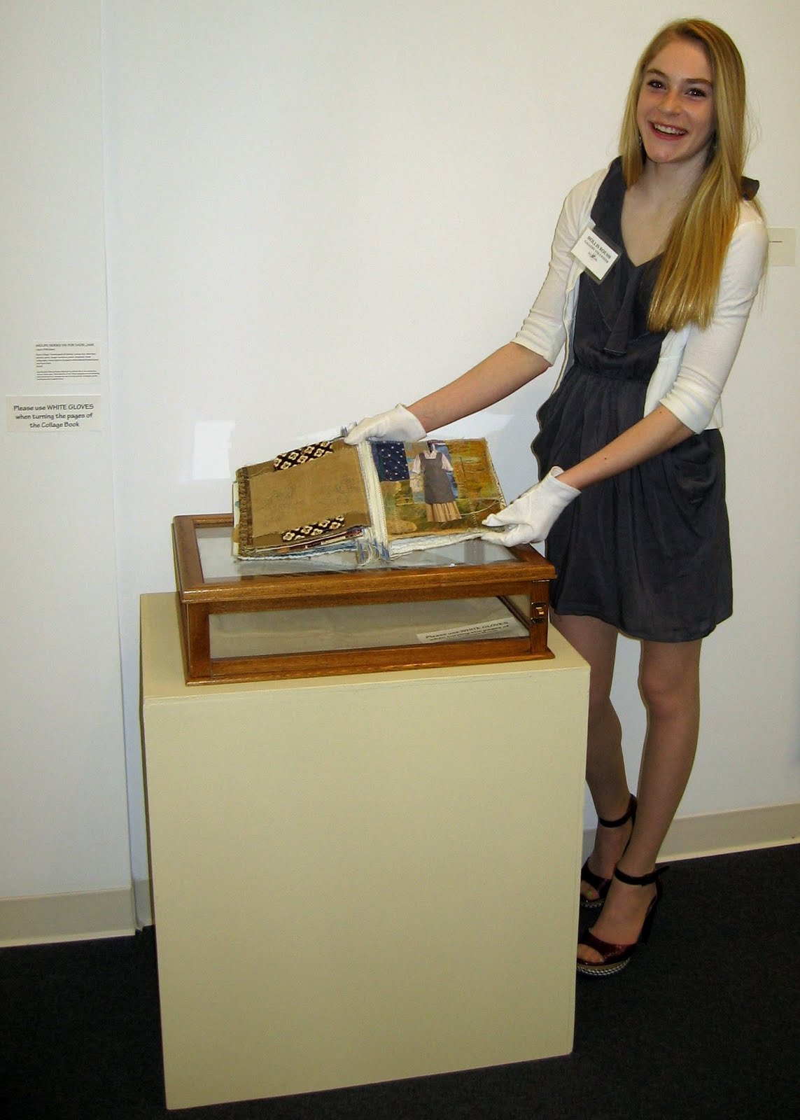 Bridget and her staff did an amazing job hanging the show, and displaying the various forms of artwork. Here, her daughters served as docents for my collage book, For Sadie Jane. Both daughters took turns, and seemed to delight in turning the pages for visitors to the opening.
