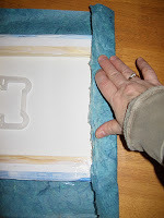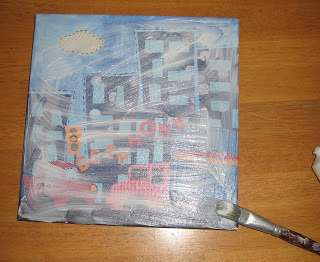 For my current pieces, I am adhering them to two upcycled pre-stretched canvases that I found in a discount store. I used acrylic gel medium applied directly to the canvas, and stretched and smoothed the paper over the top, as shown in the photos below.