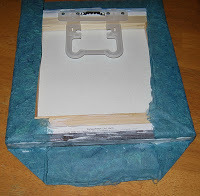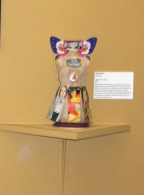 This is just a quick snapshot (and not a very good one!), taken to capture my instantaneous idea as I pulled the rest of my art together to deliver to the show. I'm excited to finish it. Step one, always my way of beginning, is to write the story on the background. I will do that while adding paint and drawings, then begin the assembly process. More to come!