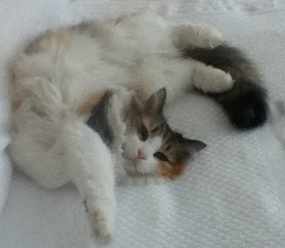The sun is brilliant in a blue sky--this despite the fact that there is more snow on the way--and the driveway looks treacherous. We are "iced in", I think, the kitties, Bernice and I. And that's okay, because all I want to do today is write. :)