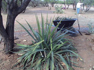 Aggressive AgaveHusband leaning on shovel, taking a break.