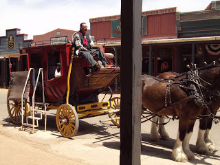Stagecoach ridesEd Schieffelin was a prospector who struck silver in 1879 and a tent city sprang up as mining efforts grew. He and his brother, Al along with another business partner staked their claim for the Lucky Cuss mine and other fortune seekers poured into the area. Within a year, a real live town sprang up with a hotel, saloons, stores, the Bird Cage Theater, and so much more. Prostitution was legal in Tombstone as long as you were licensed. The "soiled doves" had quite the business during Tombstone's heyday and you can still see the "cribs" where the ladies entertained their clientele in The Birdcage Theater. The theater is the only remaining original building in Tombstone. No planning and shoddy building practices made the place a fire waiting to happen, which it did--twice. At the height of its popularity there were 10,000 residents and celebrities of all sorts walked the streets in the town too tough to die. Lillie Langtry, Little Egypt, Diamond Jim Brady, Bat Masterson, and of course the Earps.