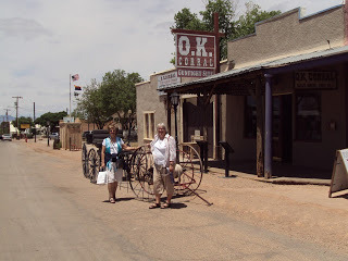 There are lots more stories about Tombstone. It was quite the place and thoroughly wicked during those wild days. Shootings, prostitution, gambling, drinking, murder, corrupt lawmen, you name it, it was happening in Tombstone. Today it's a favorite tourist stop, where you can interact with cowboys and ladies of the evening on the boardwalks in town. You can visit the Tombstone Courthouse that still has the gallows out back. A stagecoach ride around town with a knowledgeable guide will give you a good overview of its history. You can dress up, play cowboy, visit a mine, wander through the Bird Cage and see where the men played poker in the basement, and get some BBQ. There's a celebration of some sort in Tombstone at the drop of a cowboy hat. One of the biggest weekends is Helldorado Days in the fall. Celebrities still show up to get a taste of the Old West and kids of all ages enjoy the ambiance of "The Town Too Tough to Die."