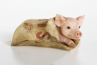Pig in a Poke - County Crafts UK.comHere's another familiar one - "a feather in your cap." Easy, right? It's to be proud of an accomplishment. This was literally a common practice on every continent. How about "a chip on your shoulder"? This is from around 1840 and a game between guys - of course! It involved a guy daring another guy to dislodge an actual chip or piece of wood from his shoulder. If you use some imagination, you can guess what happened in this particular game. Today, if you have a chip on your shoulder, you're carrying a grudge of some kind. Then if you do attempt to settle that grudge, you'll have to let the chips fall where they may.There are many, many more that embroider our conversations with laughable word pictures, such as being "hoisted by your own petard." That comes from Hamlet. Parents should know that "little pitchers have big ears." You should also know that the "cat may get your tongue", but "every dog has its day". You may have to "eat humble pie "after" getting egg on your face." Isn't that much more fun than LOL?