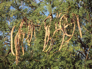 We left a yard of maples, pines, and an elm tree in New York for a yard of mesquite trees in Arizona. In fact, we have three acres of mesquite trees. The mesquite is a tough, drought tolerant small tree. Famous for its wood that smokes meat to a delicious flavor, the tree averages about 20 feet in height. Its leaves are delicate and lacy looking, but watch out! Most mesquite varieties have thorns--along the same lines as thorn apples Back East. They are deciduous and when they leaf out in April, it's about the only green we have until the monsoon.