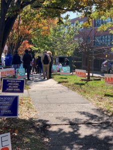 I kept walking my dogs. After lunch, I drove over to the polling station at Barclay Elementary School and smiled to see a line of people almost as long as the block. Someone was playing music on their phone, and there was a festive sound to people’s conversations. I drove to another larger polling place, where there was no line, making me think the staffing and organization was efficient, or more voters in that area had filed absentee ballots.