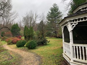 A charming green Victorian for sale two blocks from the original Ivy Bookshop provided the answer. The former church had a high ceilinged, long and wide room perfect for browsing, plus plus multiple other rooms. The property came with almost three acres of well-groomed lawns studded by trees and shrubs—quite unusual for any bookstore. There was a meditation path, a vintage gazebo, and a vast sheltered outdoor patio. There appeared to be enough room to open a coffee shop within the store, and to even keep a small apartment for the use of writers in residence or traveling on a book-signing journey.
