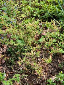 I heard that blueberries are good in sandy soil, but I will spread them around to various spots to hedge my bets. The blueberries will be shielded from the birds by netting. I don’t feel guilty, because there’s an open row of flowering chokeberry shrubs for the birds and anyone else. Apparently, squirrels and rabbits aren’t interested in garlic and onions, so I planted shallot bulbs and garlic cloves right in the dirt under the lilacs.