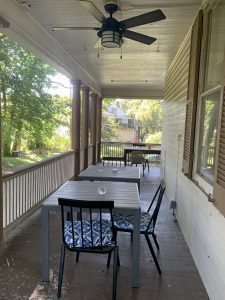Enjoying outdoor socialization, I felt inspired to buy two small tables for the side porch. Once the tables were set up, I arranged for the installation of ceiling fans. And the porch’s paint job was chipping, so it needed repainting. But wouldn’t it look weird for the rest of the house to stay dingy? That meant new shingles. And a fresh coat of stain.