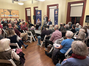 The lecture room at the Hill Center was packed with almost 100 rapt fans who’d all properly reserved seats ahead of time, with some waitlist members crowding the edges while standing on foot. Everyone was all smiles. Sir Alexander is a true Scottish gentleman and an excellent joker. He’s not one to toot his own horn, but he did come forward and answer my questions about his work, including the fact he doesn’t know the total number of books he’s written: just that it’s over one hundred, and that he averages the publication of three or four books every year.