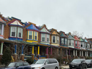 Beginning in the 1990s, the streets of Charles Village began wearing coats of many colors. One homeowner in the neighborhood painted her house in the brilliant, multiple shades of a San Francisco Victorian. She started a “Painted Lady Contest” to encourage other homeowners to paint their home’s porches and exterior woodwork creatively. The beautification of homes started on St. Paul Street, and now the candy-colored woodwork beautifies rowhouses throughout the major and side-streets.