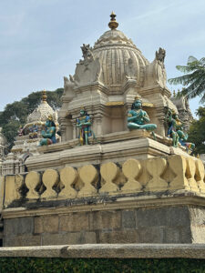 Just outside the palace was a Hindu temple completed in the late 17th century by a during the time Mysore was ruled by a Hindu dynasty. The Kote Venkataramana Hindu temple has many flourishes special to architecture of the Vijayanagar and Dravidian empires of medieval South India. I was struck by the grace of a Hindu temple and Muslim palace to sitting alongside each other without disturbance for so many years.