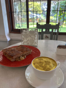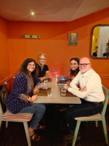 Later on New Year’s Day, we roused ourselves to go out for dinner at a cute café downtown called Toast and Tonic. I’d emailed many times and had an Instagram live conversation with Harini Nagendra, author of the Bangalore Detective Club mysteries. However, this was the first time we were meeting in person. Harini brought along her husband, Suri Venkatachalam, a biotech pioneer who’s now pursuing conservation research.