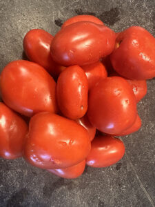 Last Sunday, my husband Tony and I agreed it would be a good idea to buy 30 pounds of Roma tomatoes at the farmers market in order to stock up for the fall and winter.