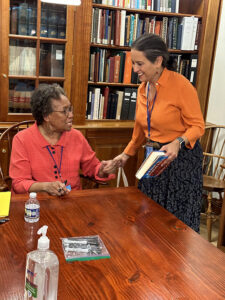Today Linthicum Walks is managed by a board of trustees endeavoring to bring the local community to enliven the house. The board first invited Marcia Talley, an Anne Arundel County writer, to speak about mystery writing. Marcia generously invited me. So in short order, the two old friends got to chatting with a group of women from Maryland and Virginia in the home’s cozy colonial parlor. Sitting comfortably in a pair of wing chairs, Marcia and I had a signing that really doesn’t compare to any other event we had. It felt like going back in time to a social hour in an enchanting atmosphere. Sunlight streamed through small old-fashioned windows; patinated wooden cabinets were filled with vintage fine china; and original fireplaces were surrounded by fox hunting prints and paintings.