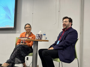 Interviewing Lev RosenThe festival opened with a talk about how Abraham Lincoln skillfully created bonds with people with whom he had significantly different beliefs—and the positive outcomes that occurred due to empathy and trust. Steve Inskeep, the host of “All Things Considered,” talked with Christina Thompson Schutt, the director of the Abraham Lincoln Residential Library Museum in Springfield, IL. Steve’s new book about Lincoln is called Differ We Must. Both of them had stories from history that greatly expanded the existing image of the sober-seeming president who ended slavery in the United States.