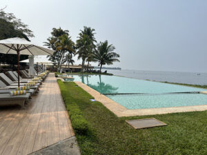 This will be the first of a few posts sharing pictures of the places we stayed. Wanting to rejuvenate after a long flight with a layover in the Middle East, we landed in Kerala on a Thursday evening and got in the resort’s chauffeured car onward to the resort—something much more chi-chi than my usual travel practices.