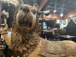 We left Fort Cochin that afternoon to visit to the nearby city of Ernakalum in order to lose a few hours at the Kerala Folklore Museum. Started by the late George Thaliath and continued by his wife and children, this museum holds thousands of objects, large and small, ranging from temple statuary to paintings and poison-testing dishes used in old royal courts. The vast scope household and temple artifacts and art of various periods made the immensity of Kerala’s history almost overpowering. Perhaps because my head is stuck in the 1920s, I zoomed in on a painting of a lovely young aristocratic woman in painting from that time. The museum also has a lovely gift shop like I’ve never seen that sells antique and modern crafts, and artisan-made textiles and jewelry.