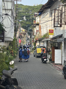 It was a pleasant hour-and-a-half journey to Fort Cochin, a district that seemed more densely packed with tourists than I remembered from my previous visits. Late October was still monsoon weather, meaning a torrential downpour of at least 90 minutes around 6 pm, but there were umbrellas in the lobby at Forte Kochi, our small hotel on Princess Street. And yes, there were plenty of bananas every day at the breakfast buffet.