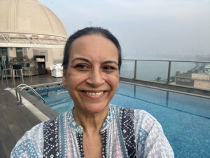 We quickly sped off to the Hotel Intercontinental on Marine Drive. I longed to ask our driver if she knew the reason for the ladies’ fight, but the language gap was too vast. She was listening to our English conversation, though, and she chuckled at our surprise at the emptiness of the Bandra-Worli Sealink Road, which is usually packed. Because the sky was just lightening over the Arabian Sea, and the buildings were lit up, it made for spectacular views. Chalo! A car trip that normally might take one-and-a-half to two hours in daytime was just 35 minutes.