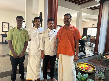 The breakfast culinary and service teamBreakfast always starts with fruit and continues with some protein, often a South Indian favorite like dosa or uppma.