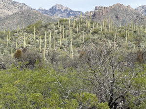 Arizona is known for attracting people who want to retire in warm weather with a dramatic mountainous environment. And while the ground is largely sand and rocks, hardy flowers and shrubs form a desert bloom at this time of year. Every bit of water that falls seems to be captured and turned into something of beauty.