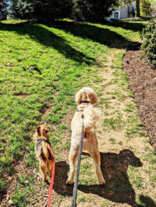 A lot of people with asthma felt their throats close after just a few moments outside. I don’t have that illness, yet my breathing was uncomfortable. The birds weren’t singing as much—and it being a new baby bird season, I worried about the tiny avian airways. Our dog walker sent us a list of danger signals for asthma and respiratory problems that dogs can experience. Daisy’s walks shortened to 5 to 10 minutes, and I wore a mask.