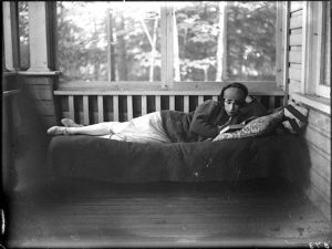 Although I can’t wait to set myself up on the sleeping porch, my back starts to twinge when I think about the floor maintenance. When I was cleaning the porch’s woodwork recently with Murphy’s Oil Soap and water, I thought of others who have done the same job the same over the last 125 years. In 1897, the neighborhood trees would have been seedlings, and without car traffic, there would be less airborne pollution. Yet, given what I’ve read in historical novels about household maintenance, the servants probably had to wipe clean the porches several times a week. I hate the pain of vigorous cleaning, but I can always stop when I want, ignoring a spiderweb or errant leaf.