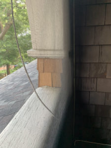Our house is extremely symmetrical, and it has a matched pair of second story sleeping porches that are defined by grand, Romanesque arches. The porch on the east side of the house catches the sunrise, while the western sleeping porch is very hot and sunny from noon onward. Our house has a third floor that’s just above the porches. Up there, we found two places with rotting wooden strips of porch and damaged railings that indicated a rough gesture of comfort for servants. We removed these balconies, which seemed more hazardous than lovely. We put in new screens on the second floor porches and repainted and retained them, and a whole new world opened up.