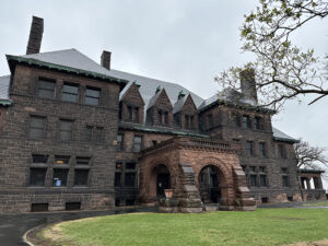 One of the few homes open to the public on Summit is the James J. Hill House. My third day of the visit, I walked five minutes from the Davidson and through the open gate to a Richardsonian Romanesque mansion which, at 36,000 feet, once was the largest residence in Minnesota. Before the Minnesota Historical Society got it, it had been gifted by the Hills to the Catholic Archdiocese. Because of that previous status, it’s devoid of most of the Hill furniture, and also had to be refurbished. Most of the Hill family’s furniture is in the homes of its descendants, not here. Still, it was a fascinating tour showing off splendid architecture and artifacts that gave context to Minnesota history and the Hill family’s rags-to-riches saga.