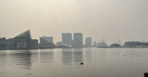 So last week, when the smoke from wildfires in Nova Scotia clouded our skies for almost a week, it was a shock. The sky wasn’t blue anymore—it was a kind of grayish. It’s hard to believe the picture of Baltimore’s Inner Harbor above is in color!