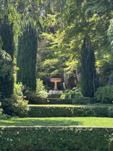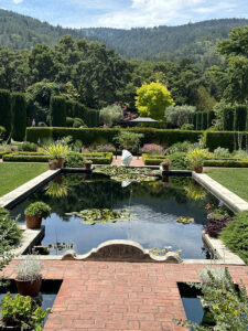 Temperatures were in the high 80s during our visit to Filoli. Despite the heat, I noted elegant frocks and the crisp suiting worn by many visitors. These glamorous young people set out elaborate picnics and posed against the vivid floral backdrops. Truly, the only missing element was a tuxedoed waiter carrying champagne cocktails—and perhaps shrimp cocktail on ice. How quickly I had lost my grasp on reality!