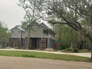 House elevated on pilings in Old MandevillePeople in Louisiana are used to storms, and they clean up as fast as they can afford—and if FEMA and insurance come through for them. This time around, because of pandemic supply chain problems, construction supplies took months to arrive—and construction workers were in short supply, as they are across the country.