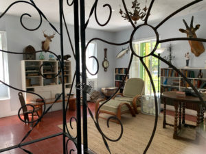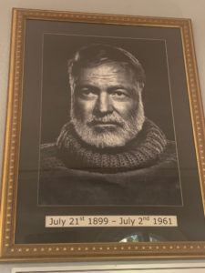 Most of the original furniture from Ernest’s time is gone, but the writing study is furnished as a stylish masculine adventurer writer’s room. Mission furniture, animal furs, and earth tones abound. Was this Pauline’s work, or someone else’s? I found the study attractive but doubted that every single piece dated from the thirties. The condition was simply too good, and the quality so tasteful. Yes, there were old books in the cases, but Hemingway’s writing study looked more like an idealized reception room to me.