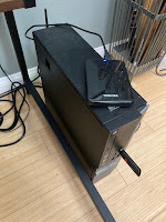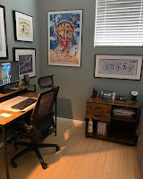 Finally, I bought some relatively inexpensive yet great-looking office furniture including a wood/metal computer desk, matching finish wood storage cabinet, and, best of all, a comfortable office chair that smashes the thrift shop $6.00 special that's been killing my lower back and posterior for years.