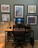 Step two was to take down my ragtag assortment of animation-related wall decorations and replace the dingy-looking tan walls with a restful/calming/classy "Sage Gray" paint in an eggshell finish. I absolutely love this new color.