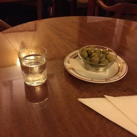 The bar is pleasant and comfortable, though quite small, and the waiter friendly as I approached and ordered a dry martini. I must confess I was a little surprised when instead of mixing me one, he took what looked like a tumbler out of a chiller on the bar and set it in front of me (I thought, at first, that it was a complimentary glass of water) and then this was joined by a little dish of olives: