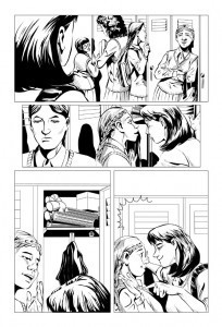 We've been following this page from the rough panel mock up, through to the final shaded page I'm showing here. In the next couple of days lettering will be applied.