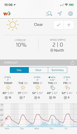 Wunderground. Rands rule: I will always try any new monospaced typeface, productivity app, and weather app because I firmly believe these are unsolved problem spaces. While I continue to enjoy and trust the lens Dark Sky (Paid for it) provides into my day, and I particularly like the map (when it loads), the ten days graphed forecast in Wunderground is absolute gold. It reliably tells me both the arrival time, duration, and intensity of forthcoming weather.