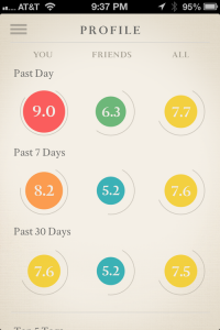 Your responses can be further annotated with notes and photos detailing where you were when you made them, and with whom. Expereal also allows you to chart your assessments over time, and (of course!) compare yourself to friends and fellow users: