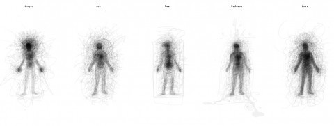 Pushing past such uncomfortable observations meant taking a short break, and attending more carefully and more holistically. And with practice I got better. I began to observe that whatever I was feeling, I was rarely feeling it just in my mind, it was in my body, too. – not just my hands, but my posture, the way I held my frame. I was reminded of a wonderful PopTech talk by the Irish designer Orlaugh O’Brien, about her project “Emotionally}Vague”, in which she collected and overlayed hundreds of people’s self-reported drawing of where they felt various emotions in their bodies: