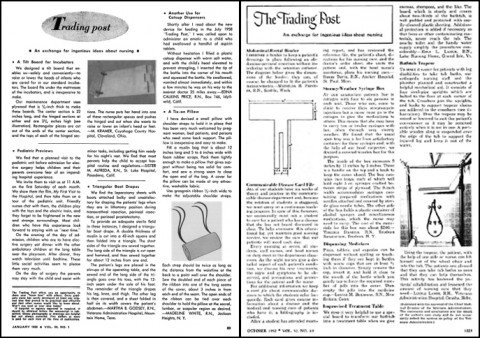 It wasn’t always like this. A scan of the back pages of The American Journal of Nursing from the 1940s and 50s shows lots of sharing of what we might today call nursing “hacks” – clever, unconventional uses for products, and DIY, jerry-rigged devices all invented to improve patient care, and make nurses’ jobs easier.