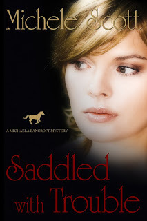 One of the things that I have learned from reading Konrath's blog is that covers make a huge difference as to what readers will spend their money on. I have always known this but when I decided to try out this process of making my back list available myself, I didn't put much credence into it. I thought that I would put them out there and maybe earn some coffee money here and there. Then in the last month something started to happen--the books started selling quite a bit more on a daily basis. I thought at that time that maybe I shouldn't change what doesn't seem to be broken. However, I wasn't doing the types of sales that I read about some of these success stories on Konrath's blog. The kind that allows writers to quit their day job. I made the decision to go for it and redo the covers AND write a few of the books under a couple of different pen names. I started out with my Michaela Bancroft Mysteries (AKA The Horse Lover's Mysteries). One of the reasons that I am coining them the Michaela Bancroft Mysteries now has to do with the fact that so many readers out there seem to have the impression that one must love horses to enjoy these mysteries. On the contrary, I assure you! So far, I have "Saddled with Trouble," redone and would love you feedback.